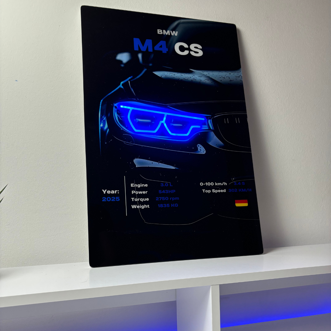 The Redzone Frame is precision-crafted from premium acrylic with vivid UV printing and durable LED neon flex lighting. This combination ensures both strength and longevity while maintaining a sleek, modern aesthetic. Inspired by automotive design, the frame vividly showcases cars with vibrant illumination, making it a striking display piece. Built to last and easy to install, it’s the perfect choice for enthusiasts who want a stylish and durable way to highlight their vehicles.